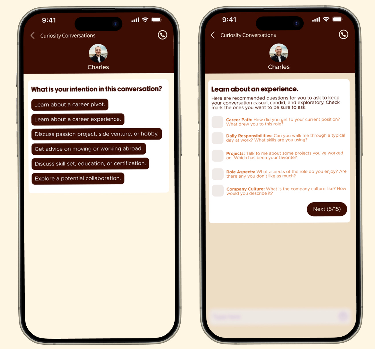 Thatās why we built our 1:1 Chat feature to serve two powerful purposes: candid career validation before a major move, and knowledge expansion through direct exchange with other individuals in your given field or role. These chats are designed to help you discover and deepen your career, in a way that is authentic to you.